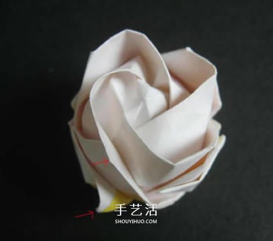 折好的玫瑰花正面。
