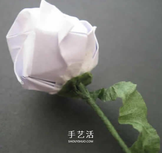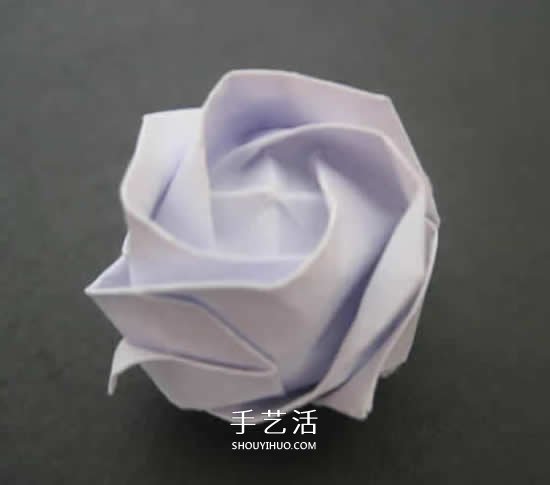 漂亮的纸玫瑰折纸完成。