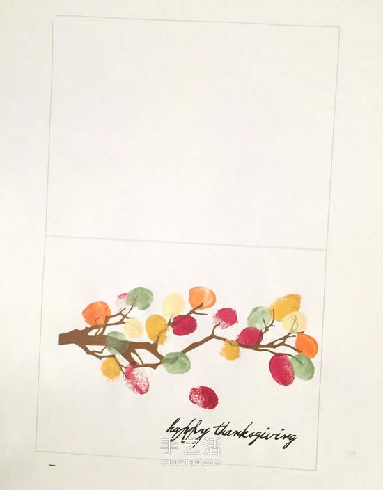 把卡纸剪开,有图案的一面向外对折,就完成了一张感恩节贺卡的制作!~
