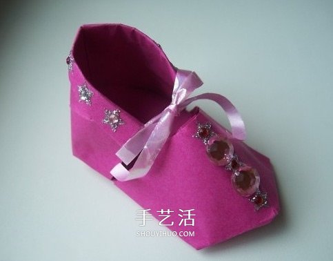 撑开,并加上装饰,就完成了纸鞋子的制作~