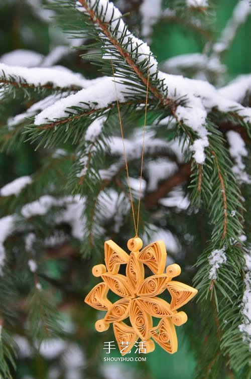 最后在其中一个圆紧卷上绑好细绳,好看的冬天雪花挂饰就做好啦~
