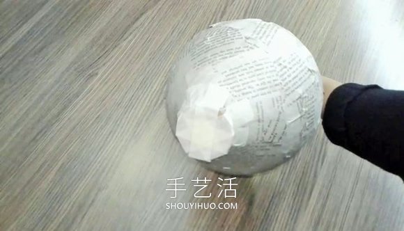 2.把报纸或其他废纸剪成小片,然后粘贴在气球上。