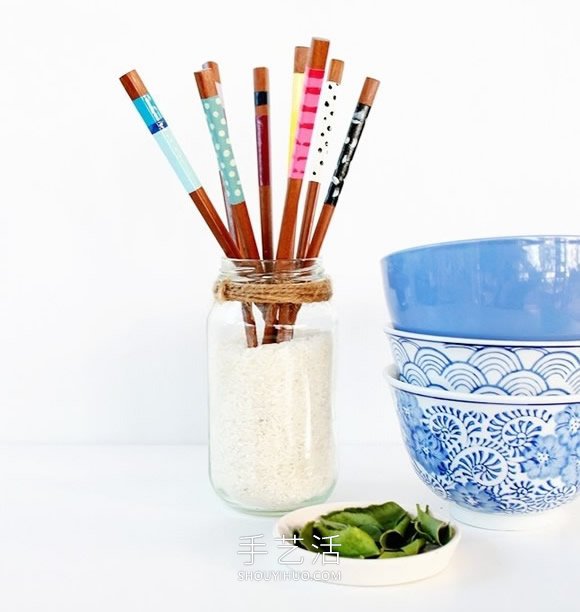 4.最后撕去胶带,漂亮而唯一的筷子DIY完成啦~