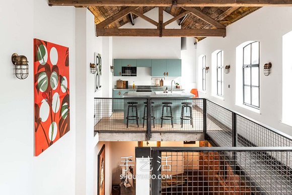 The Compound 位于伯明罕的 Jewellery Quarter,Stuart Holt 在 2012 年时买下,阳光从 35 公尺高的挑高天花板洒下,点亮了整个室内空间,而工厂灯光、钢框玻璃墙、金属栅栏走道和裸露在外的天花板横樑,则诉说着纺织工厂过去的历史。不过室内的摆设可不只如此,像是从退役潜水艇借来的铜灯下,是一扇从监狱回收的门,此外,还有许多当地工匠打造的艺术品。