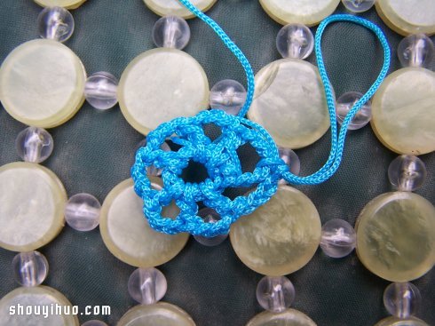 用短针与起头连接,钩成一个圆环状后再钩6针小辫。
