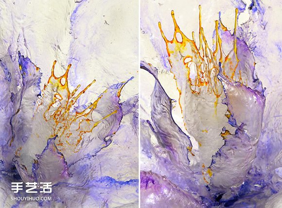 意大利艺术家 Annaluigia Boeretto(又名 Annalù)的时光暂停魔法,幻想出一个充满液体的世界,所有现实中的物体都不再「顽固」,多了一份激情与活泼。她运用树脂,去雕塑每个水和玻璃元素的集合体,无论是挥洒自如的书页,还是突破框架的花朵,在她的创意推波助澜下,溅起了瞬间凝结的生命力。