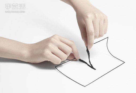 这项在东京Creation Gallery G8所展出的展览Un-printed Material Exhibition,虽然整个展览没有一张纸,却让你无处不察觉到纸的存在。充斥在展览中的黑色线条,有些是纸张的折痕,有些则已经被撕开,透过这种将细节归零,只靠轮廓描述纸张的状态,好像更能让人体会、观察到纸的更多面向。
